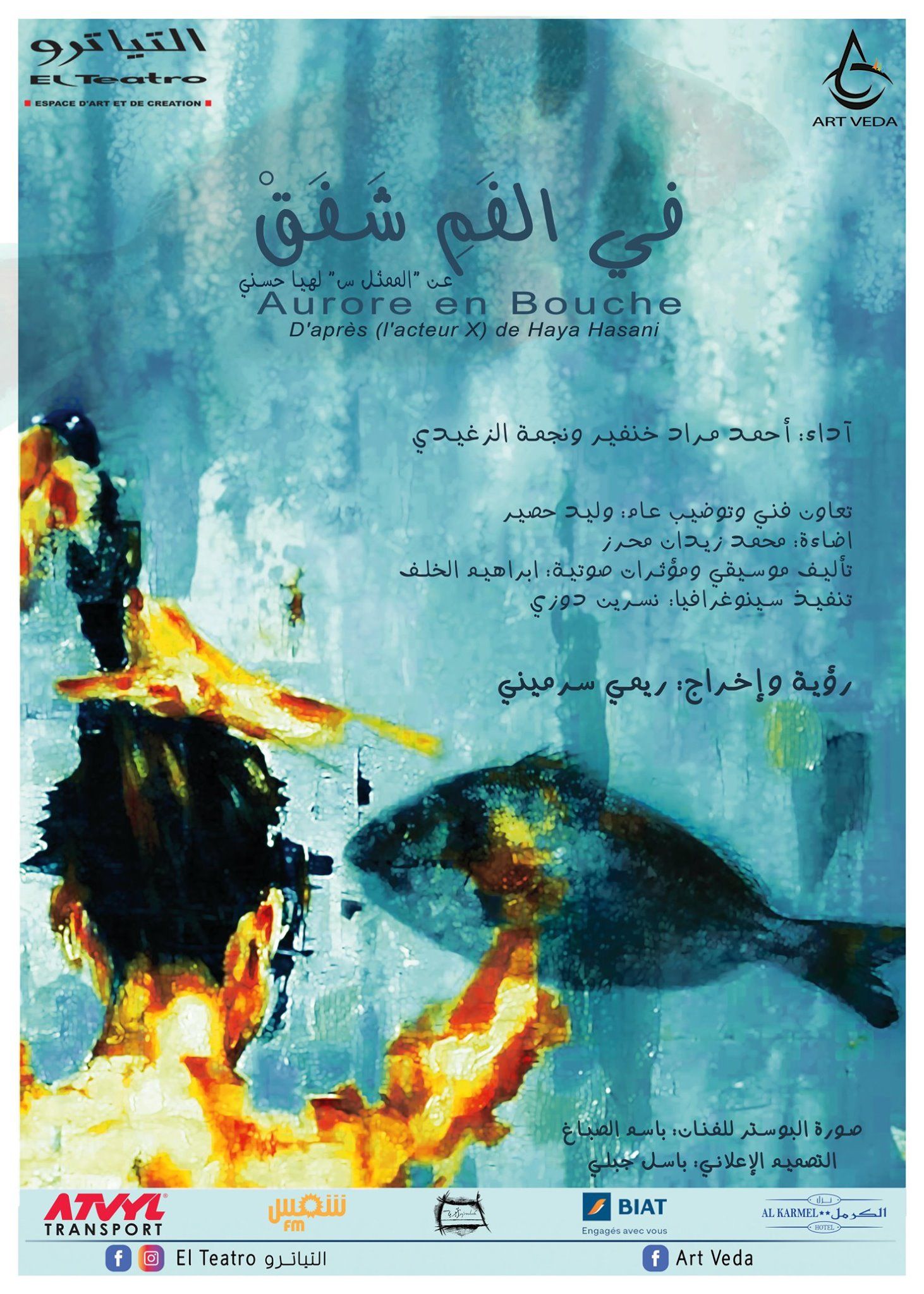 In the Mouth, There is a Twilight : A Journey of Love and Self-Discovery In the Mouth, There is a Twilight is a gripping theatrical piece that delves into the complexities of love, identity, and human connection. Written by Haya Hosni and directed by Remi Sarmini, the play follows two actors—voluntarily exiled from the world of theater—as they reunite for one final night. Their relationship, teetering on the edge of collapse, becomes a battleground of confidence, repulsion, and attraction.